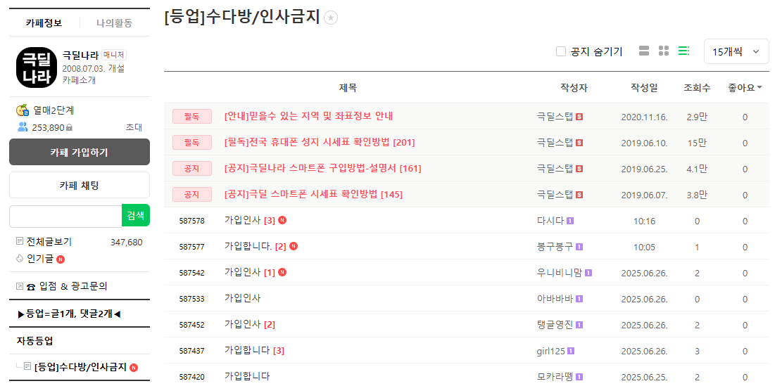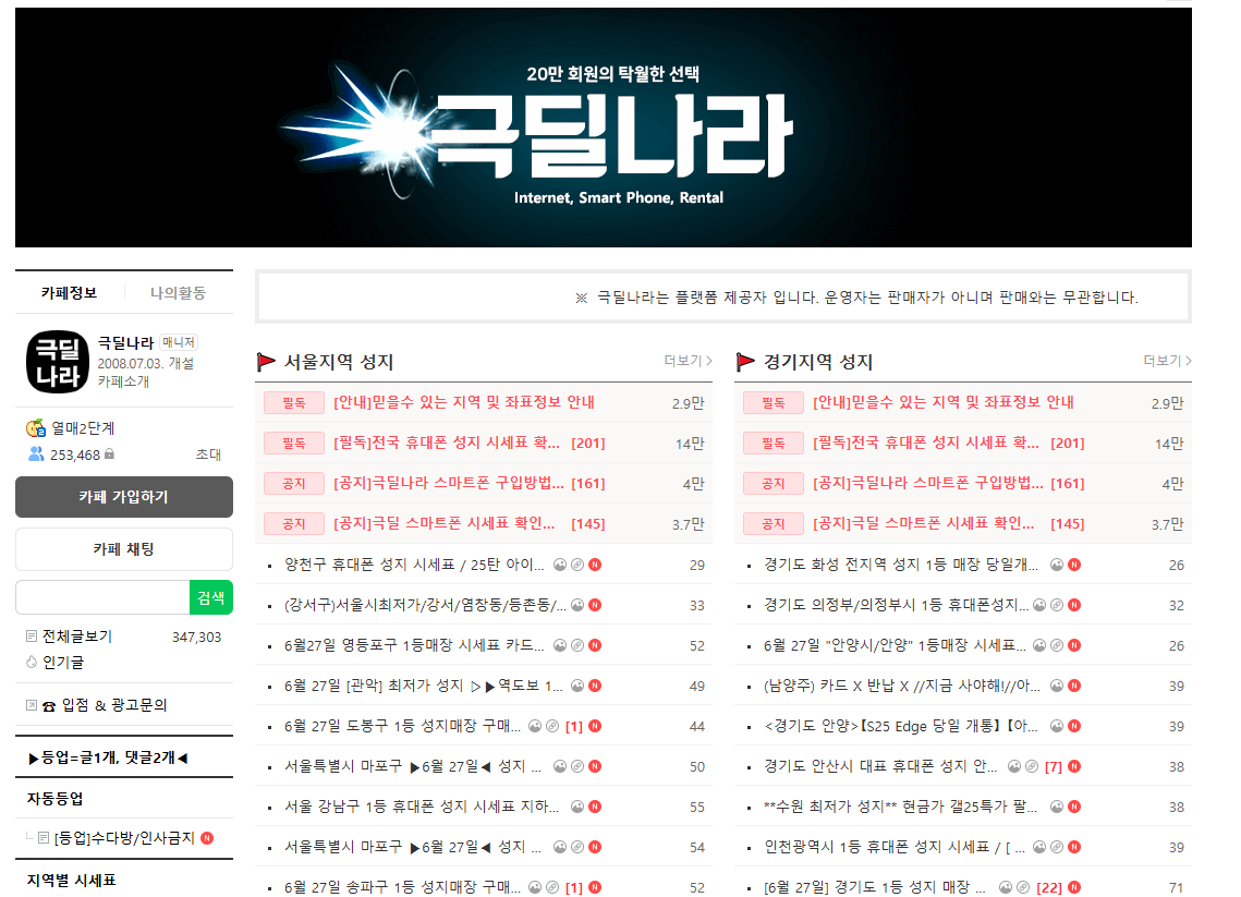 | 시세표 확인 | 네이버 휴대폰 카페 시세표 활용 | 예: 서울/경기/충청/경상 등 지역별 실시간 정보 |