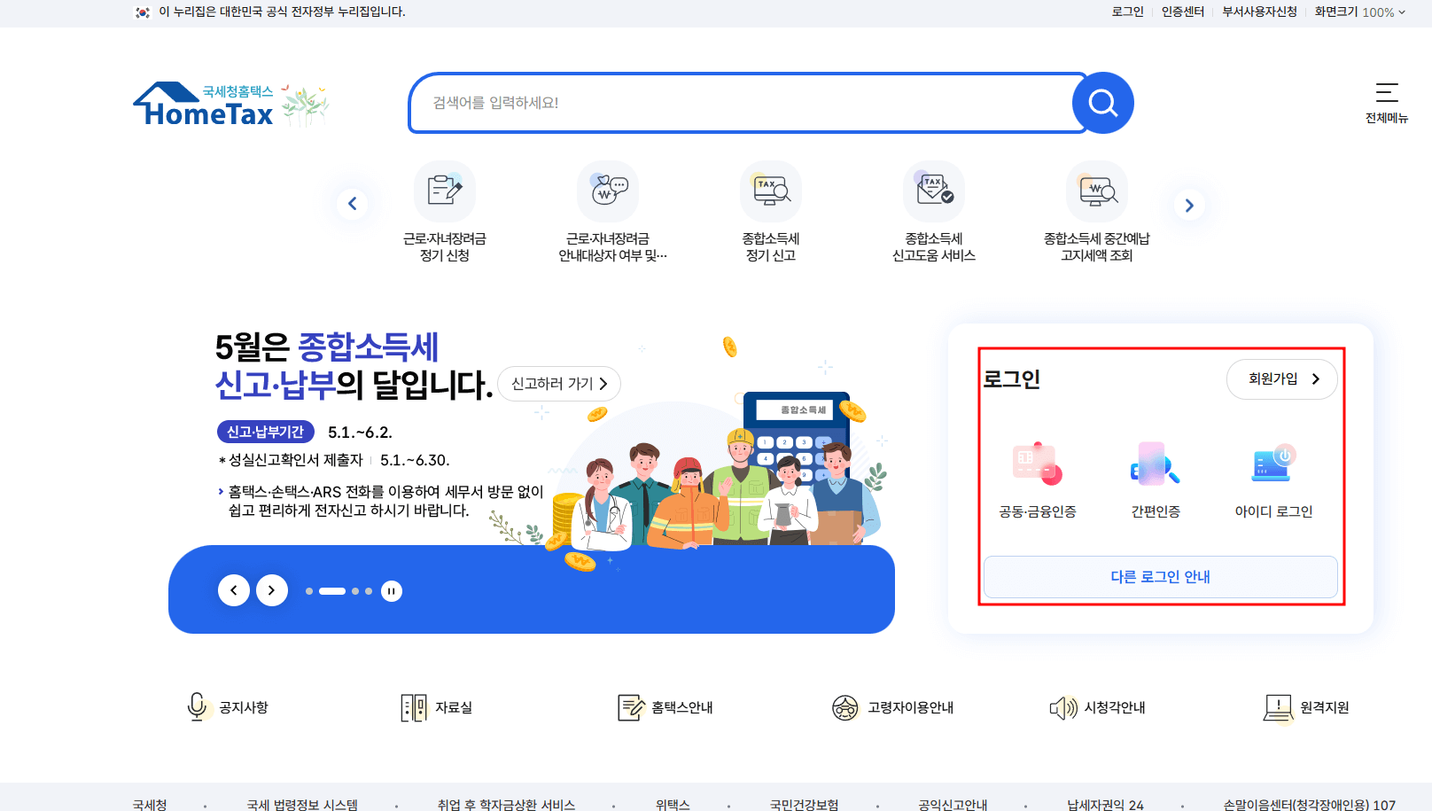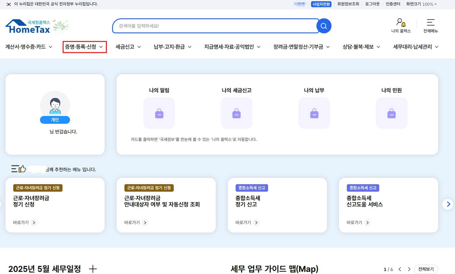 - 홈택스 접속