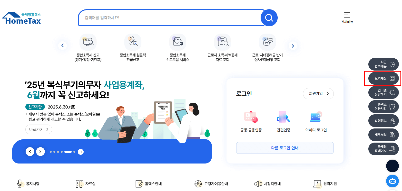바로 국세청 홈택스의 ‘모의계산 서비스’ 덕분입니다.